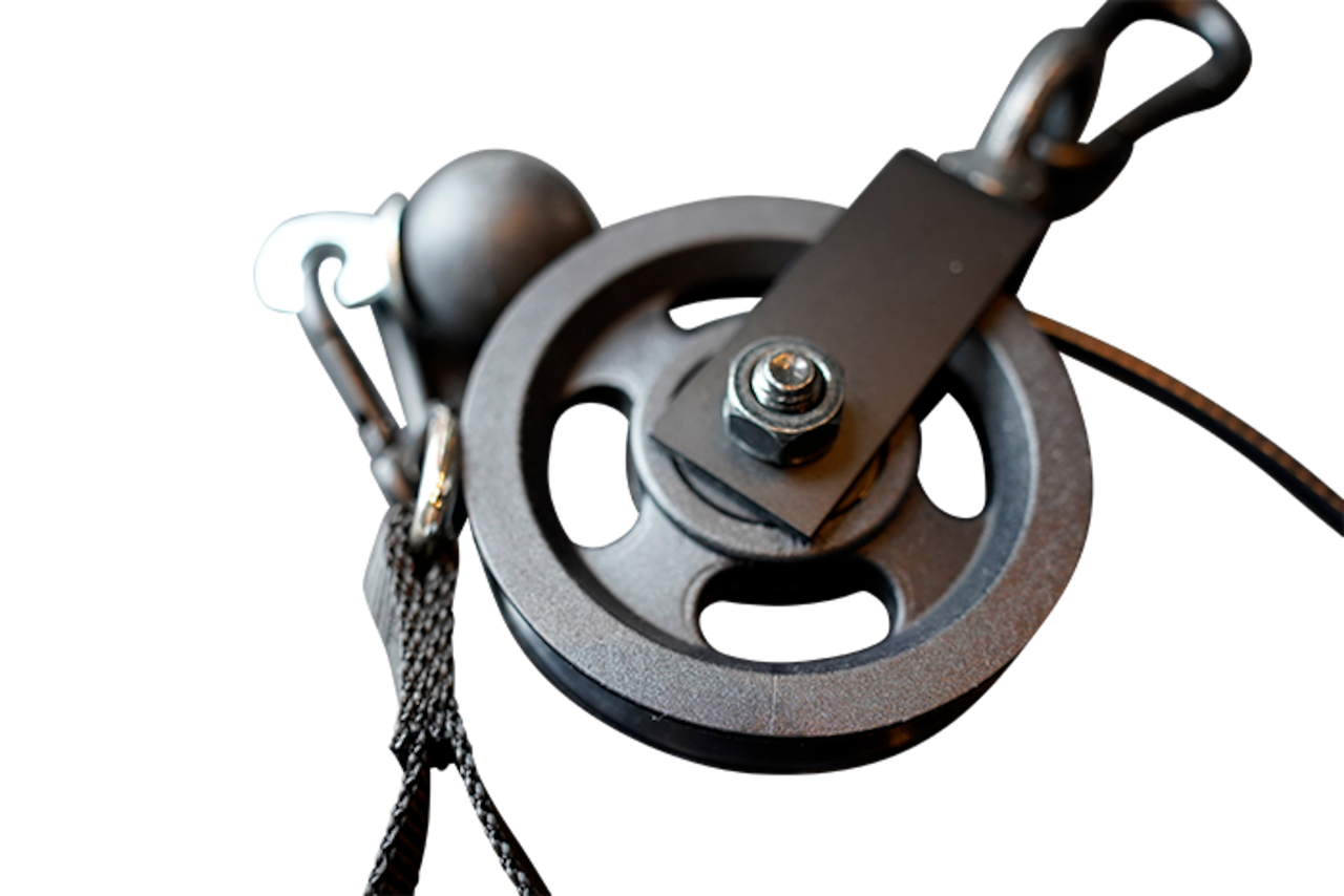 ①ベアリング内蔵の大型滑車により、スムーズで静かな動きを実現しました。